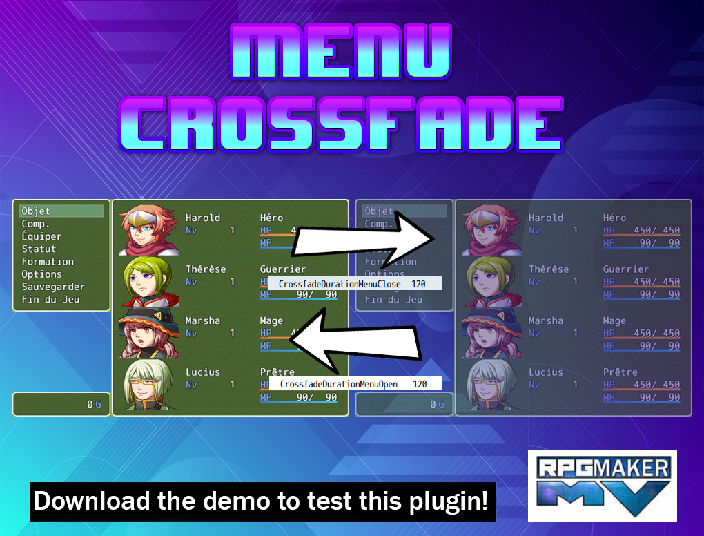 Bring polish and to your game's user interface with a lightweight plugin that adds smooth crossfade transitions between menus, sub-menus.